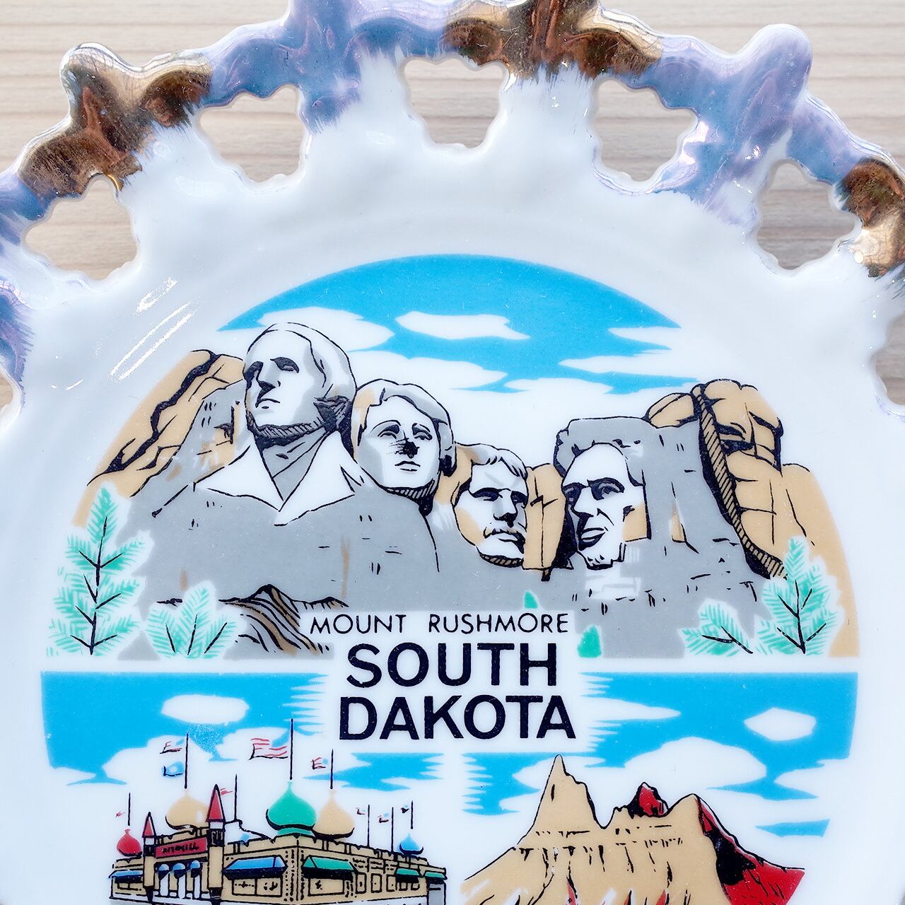 Ceramic souvenir plate Mount Rushmore South Dakota 1950s-60s【USED】