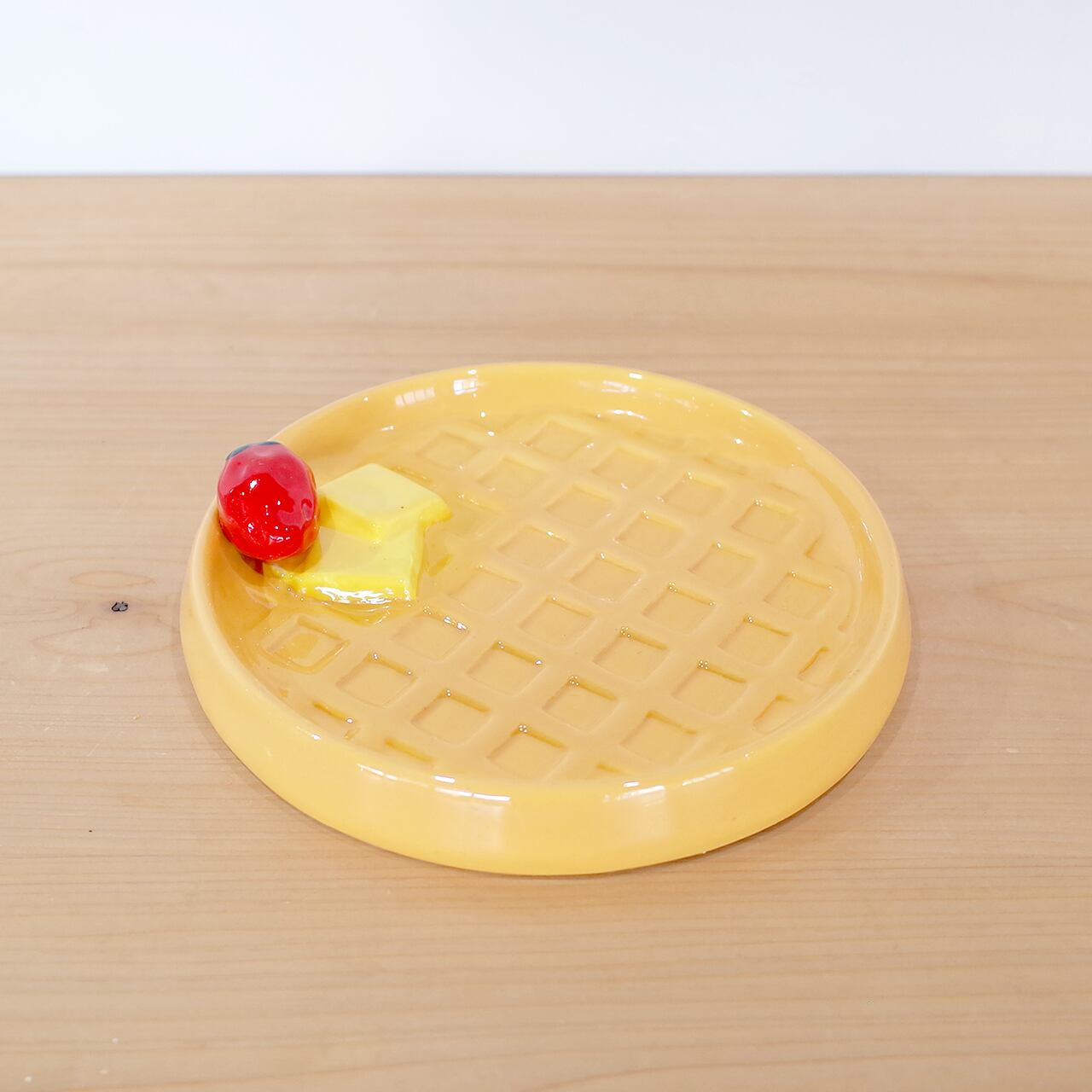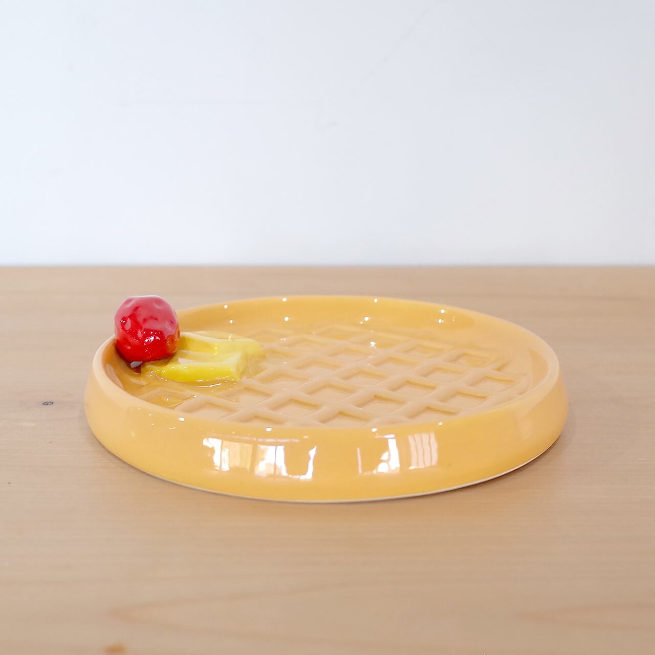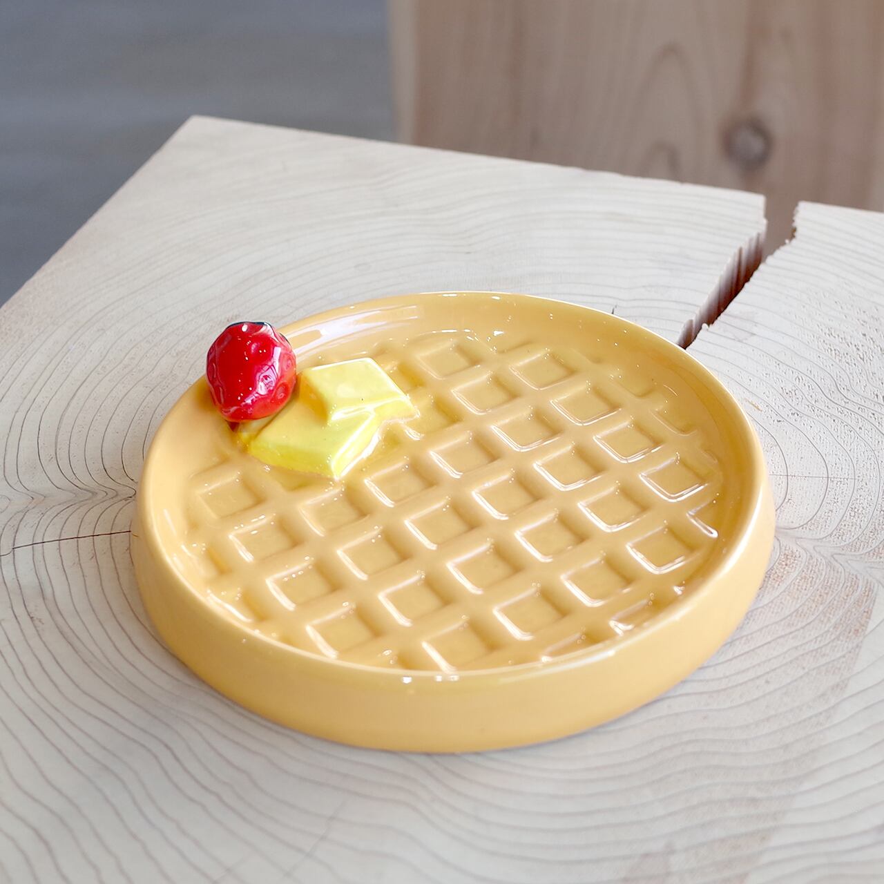 DOIYの"Good Morning"シリーズからリリースする、ワッフルをモチーフとしたスイートなテイストの小物トレイ。おいしそうなイチゴとバターがデザインのアクセントに。