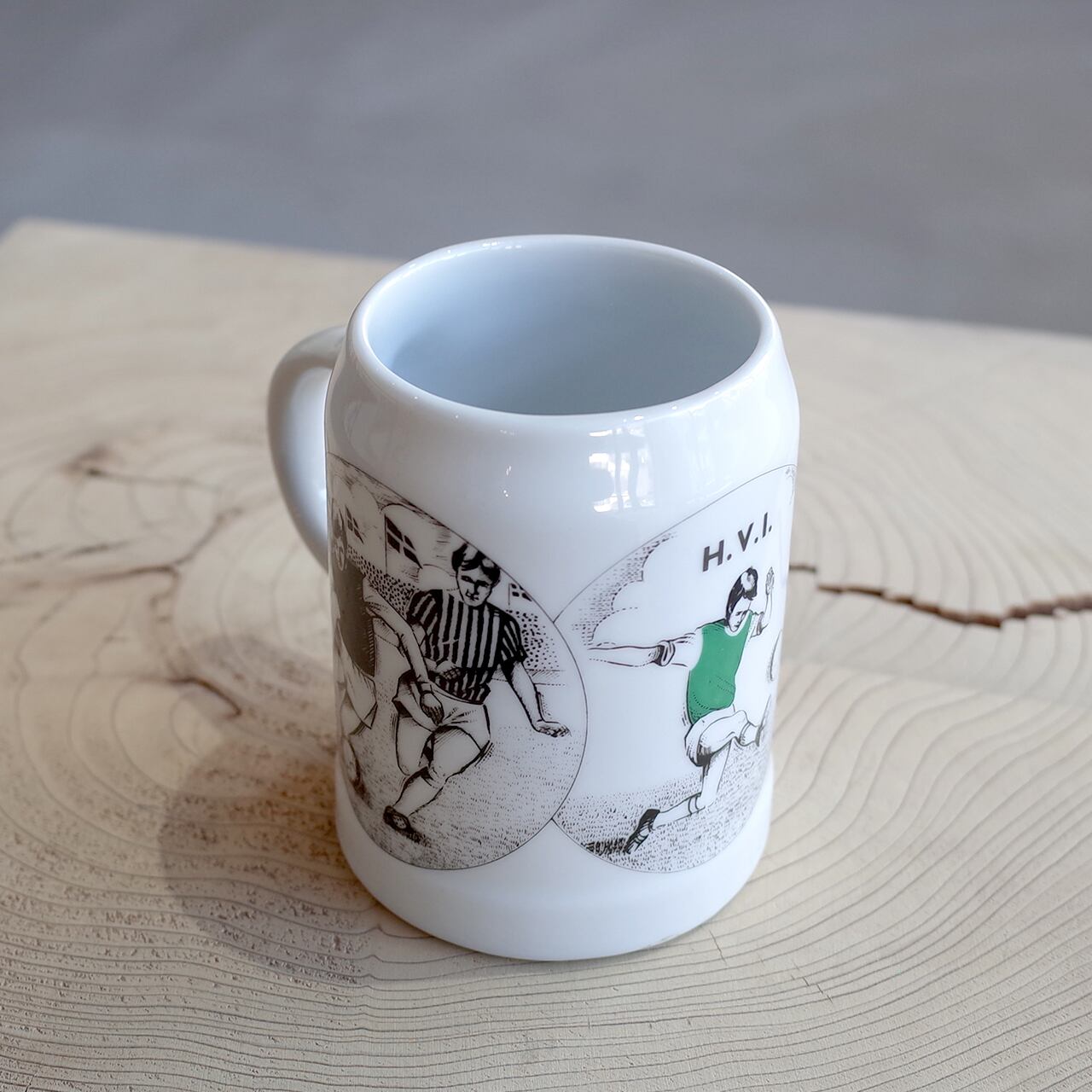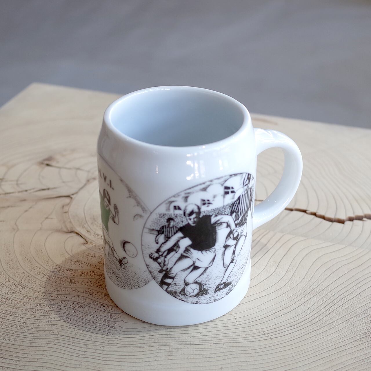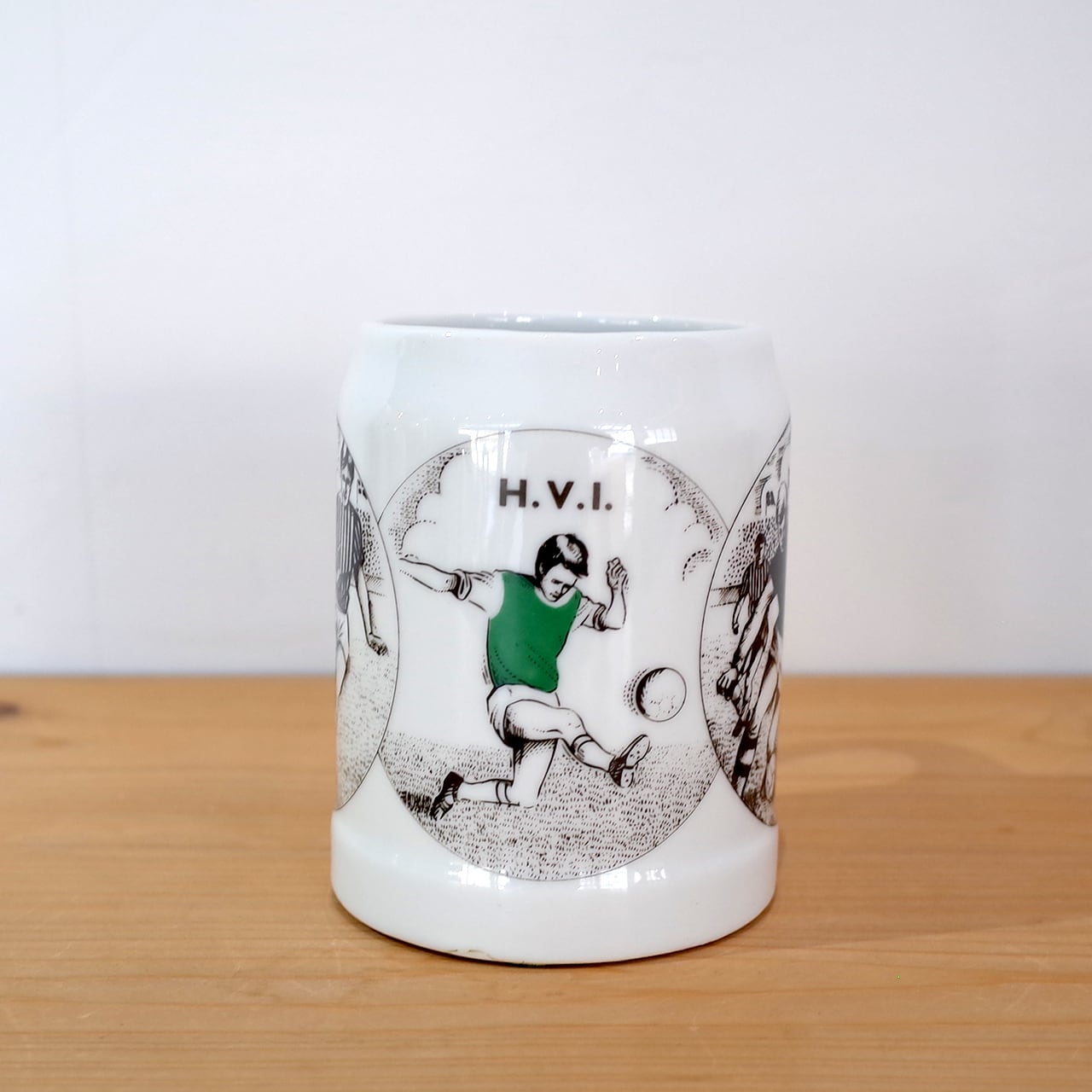 地域のサッカーチームの記念品と思われるビアジョッキです。
