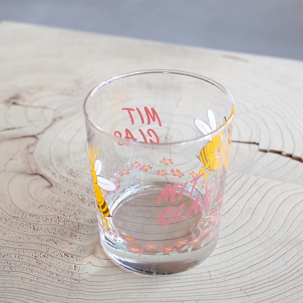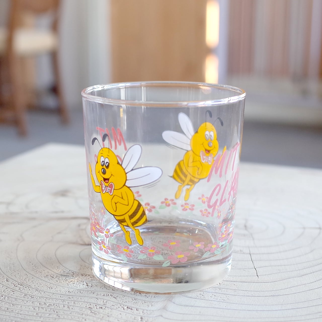 蜂のキャラクターのプリントされたデンマークのタンブラーグラスです。