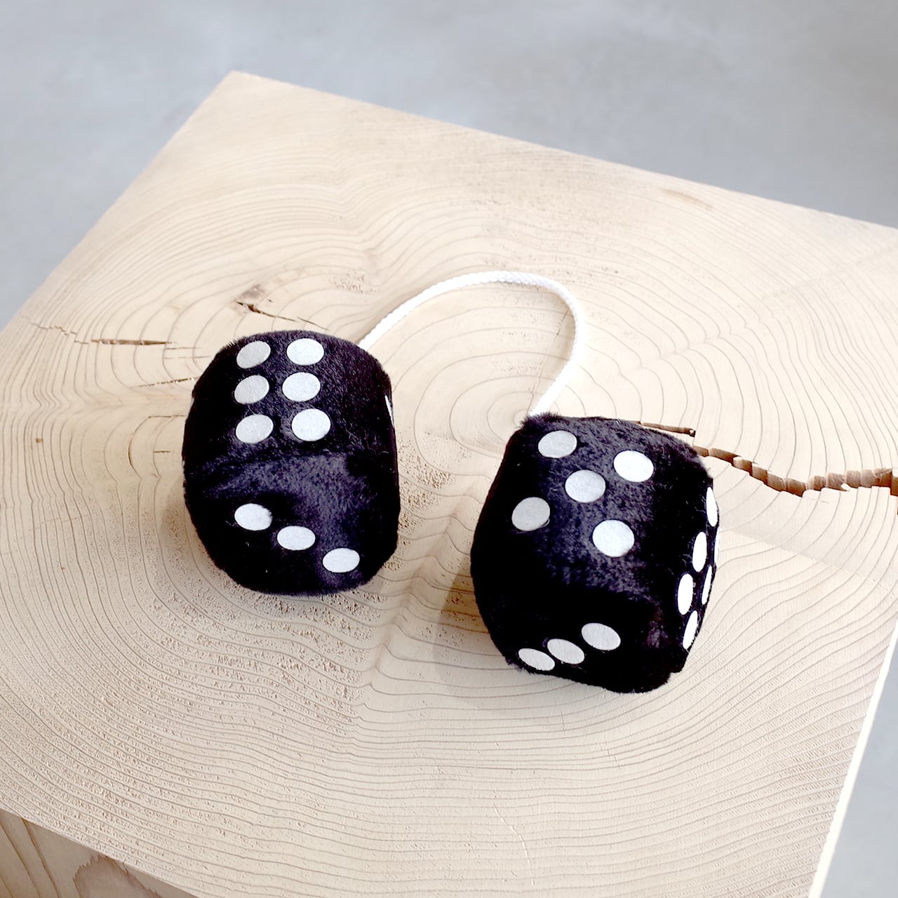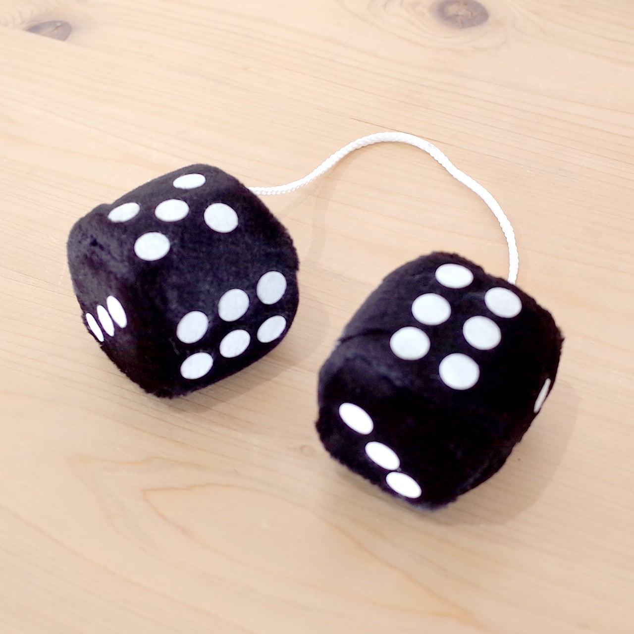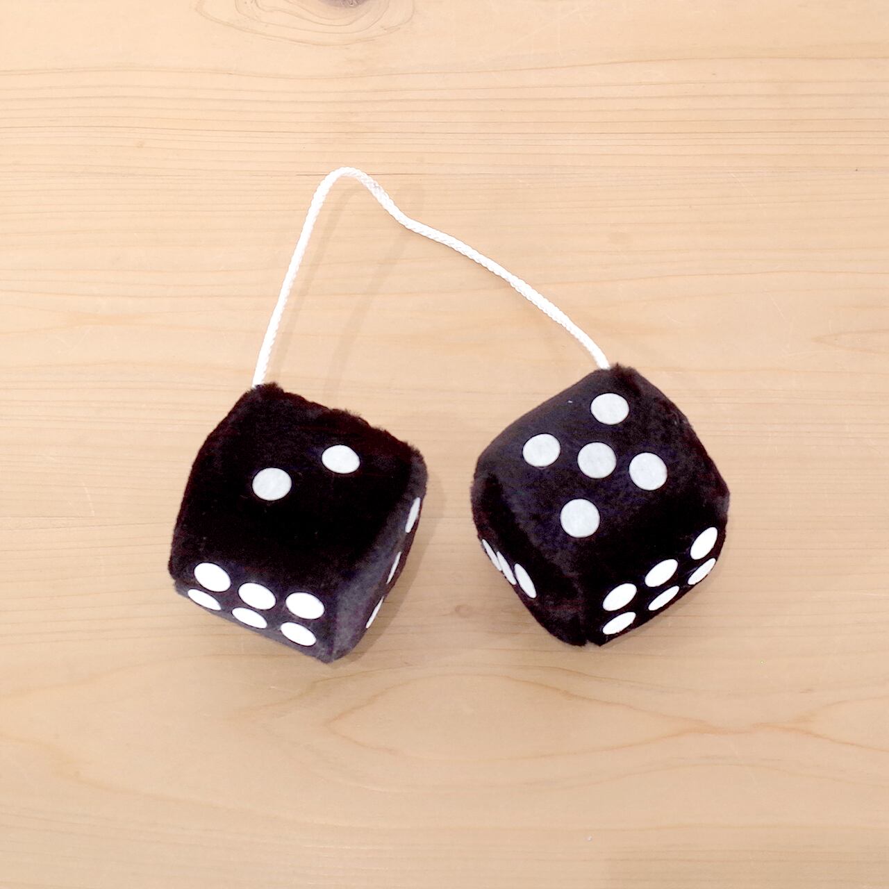 二つのサイコロが紐がつながっており、それを車のルームミラーに掛けるカーアクセサリーです。