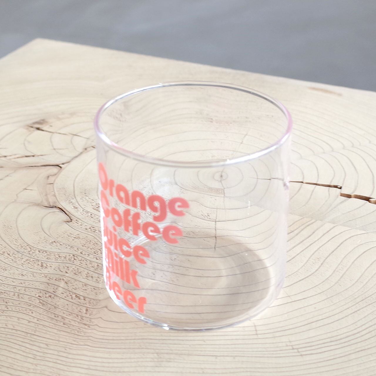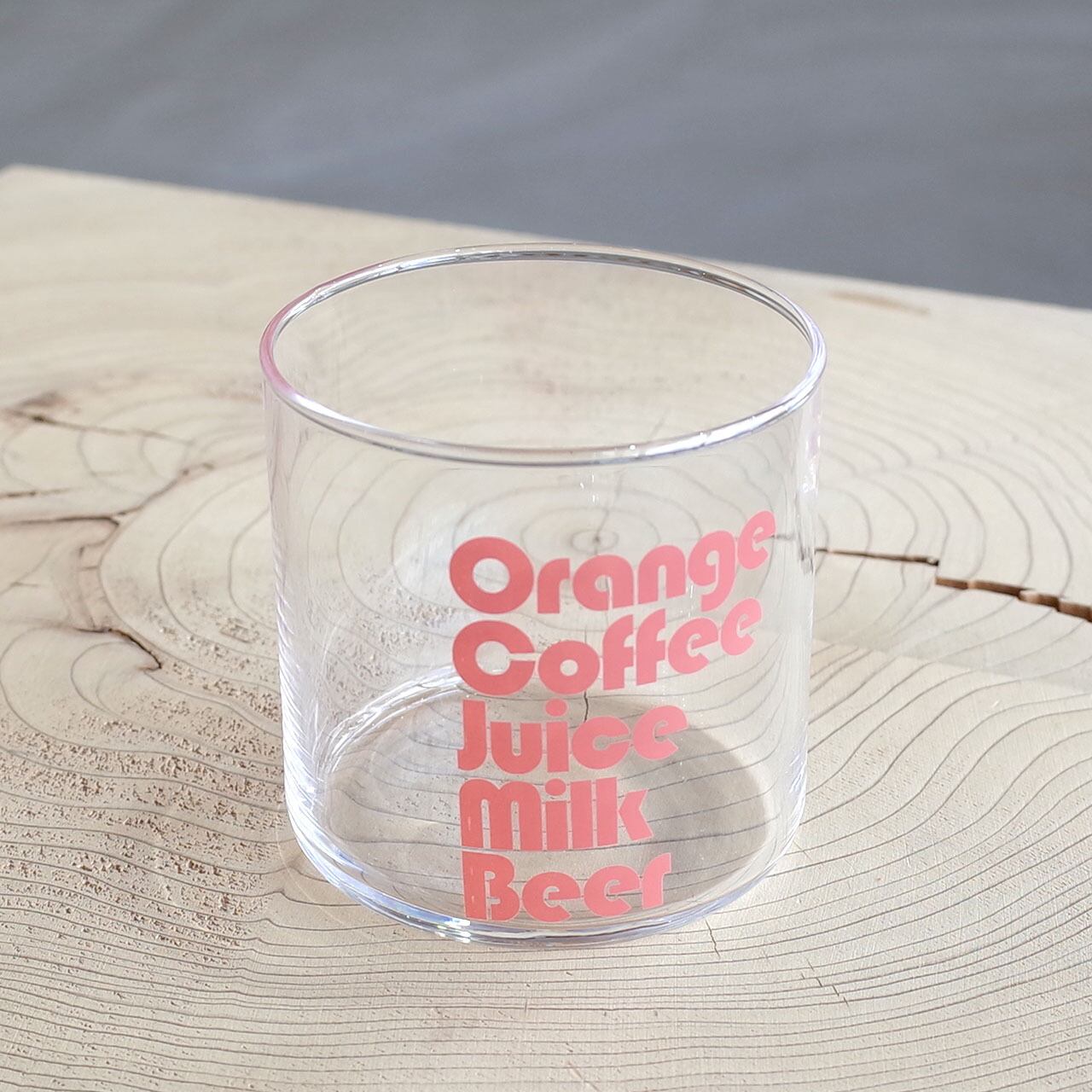 80年代らしいポップなレタリングのプリントを施したSwimsuit Departmentのグラスです。