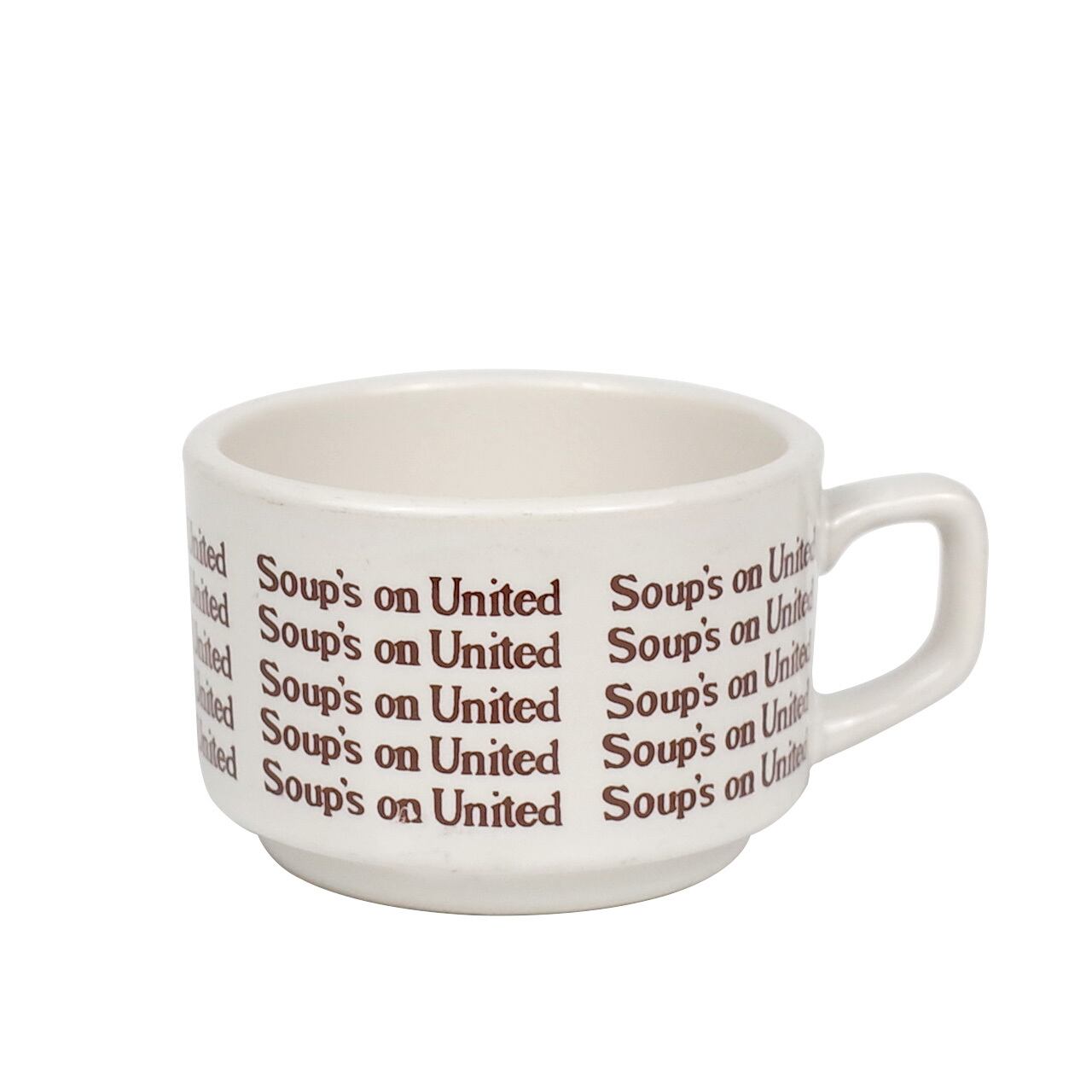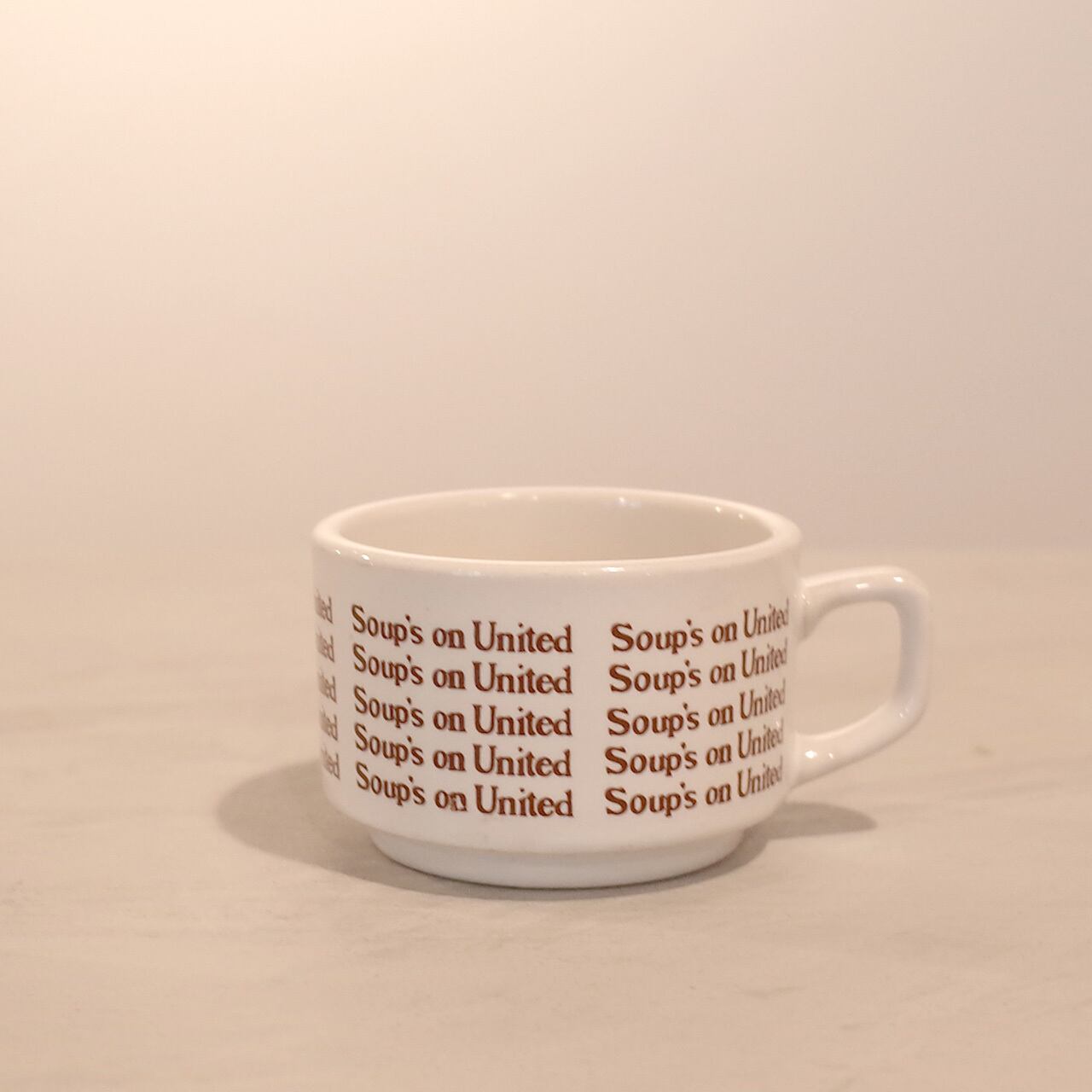 "Soup's on United"の文字が全体に規則的に配置されています。