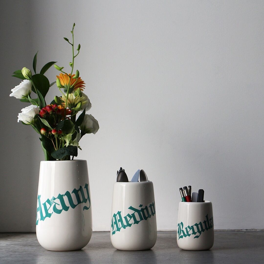 西ヨーロッパが起源とされる装飾的でクラシックな書体『Blackletter font』を大胆にプリントしたセラミックベース。