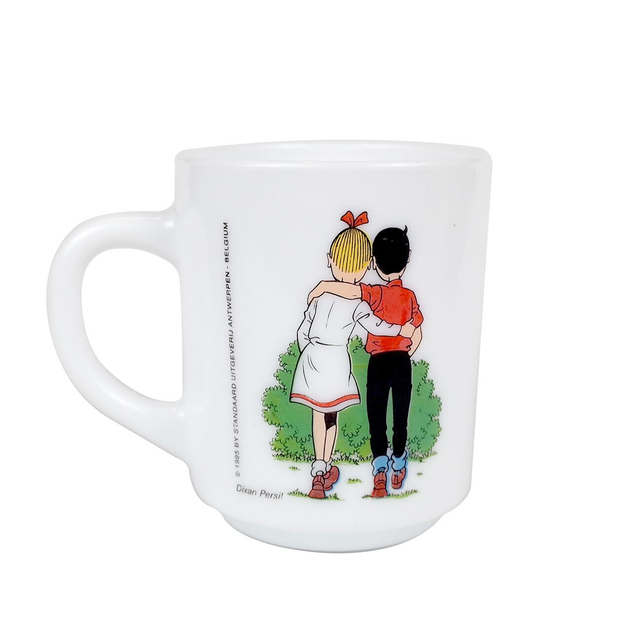 ベルギーの漫画家ウィリー・ファンデルスティーンの作品「ボブとボベット」のキャラクターがプリントされたマグカップです。