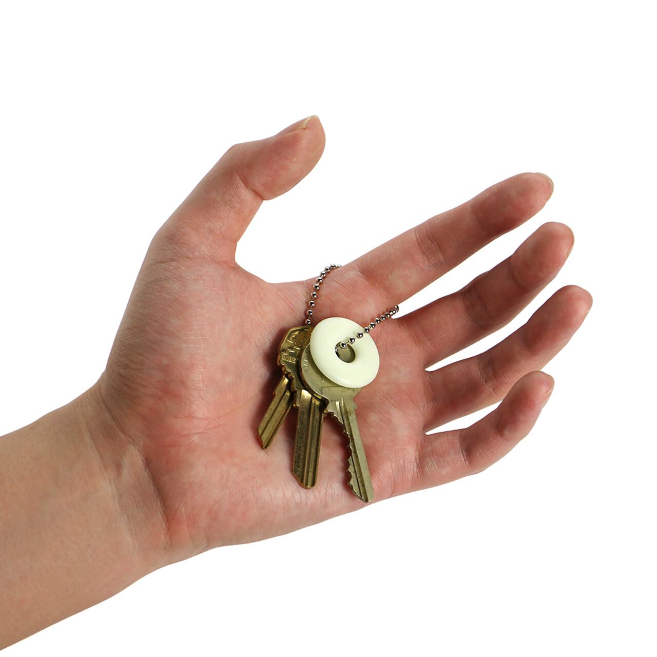 太陽光、スマートフォンのライト等様々な光源から蓄光することができるリングパーツ5個セット。キーリングやジップに付けることで暗い状況でも素早く認識することができます。