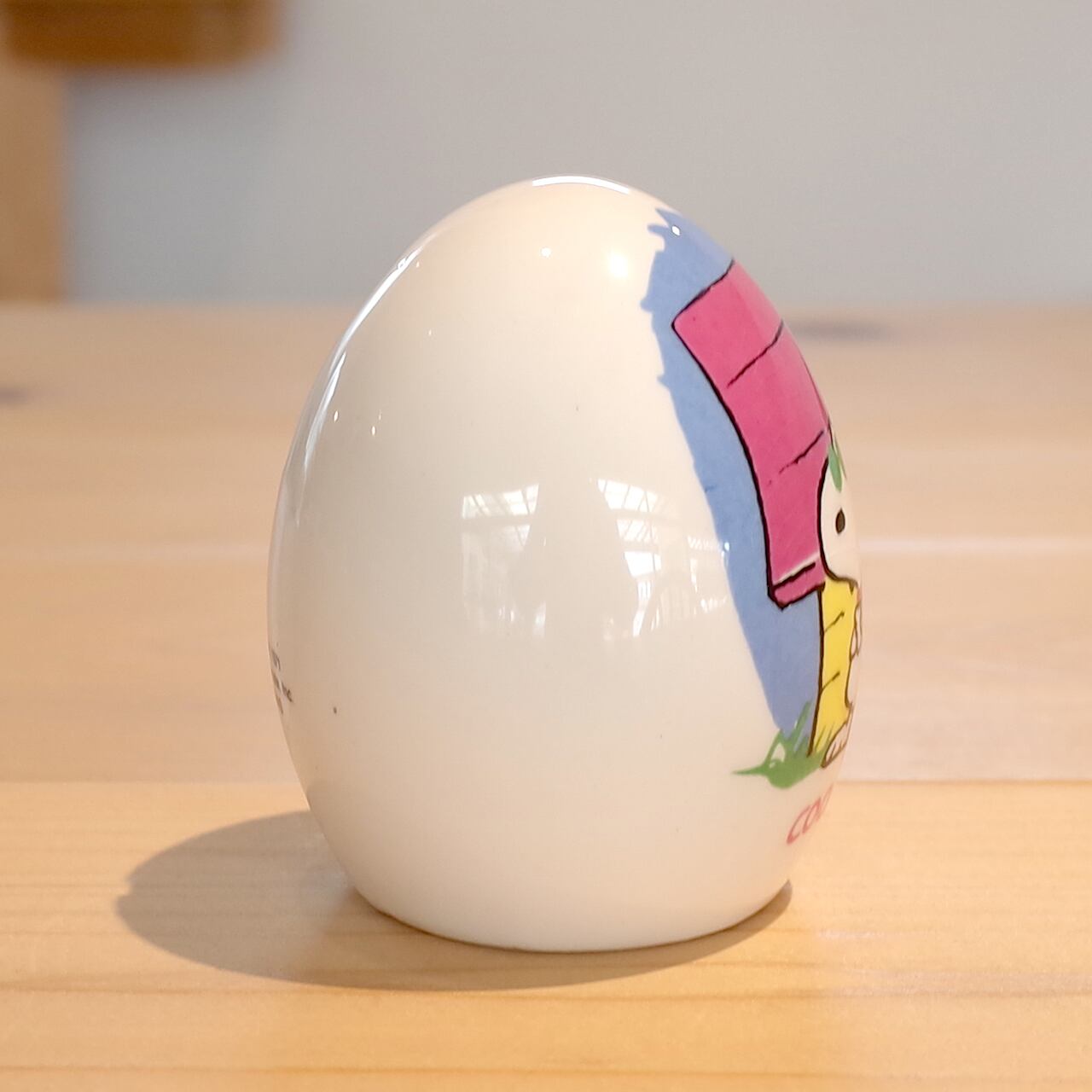 スヌーピーの陶器製の卵型貯金箱です。