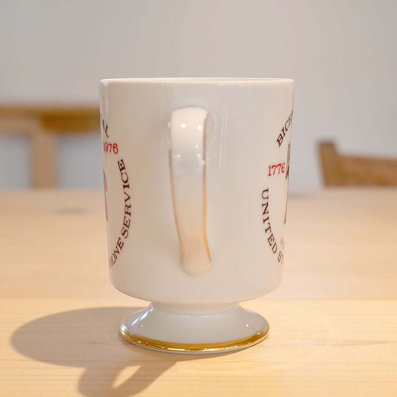 アメリカの電話事業100周年及びアメリカ建国200周年を記念したフッテッドマグカップです。