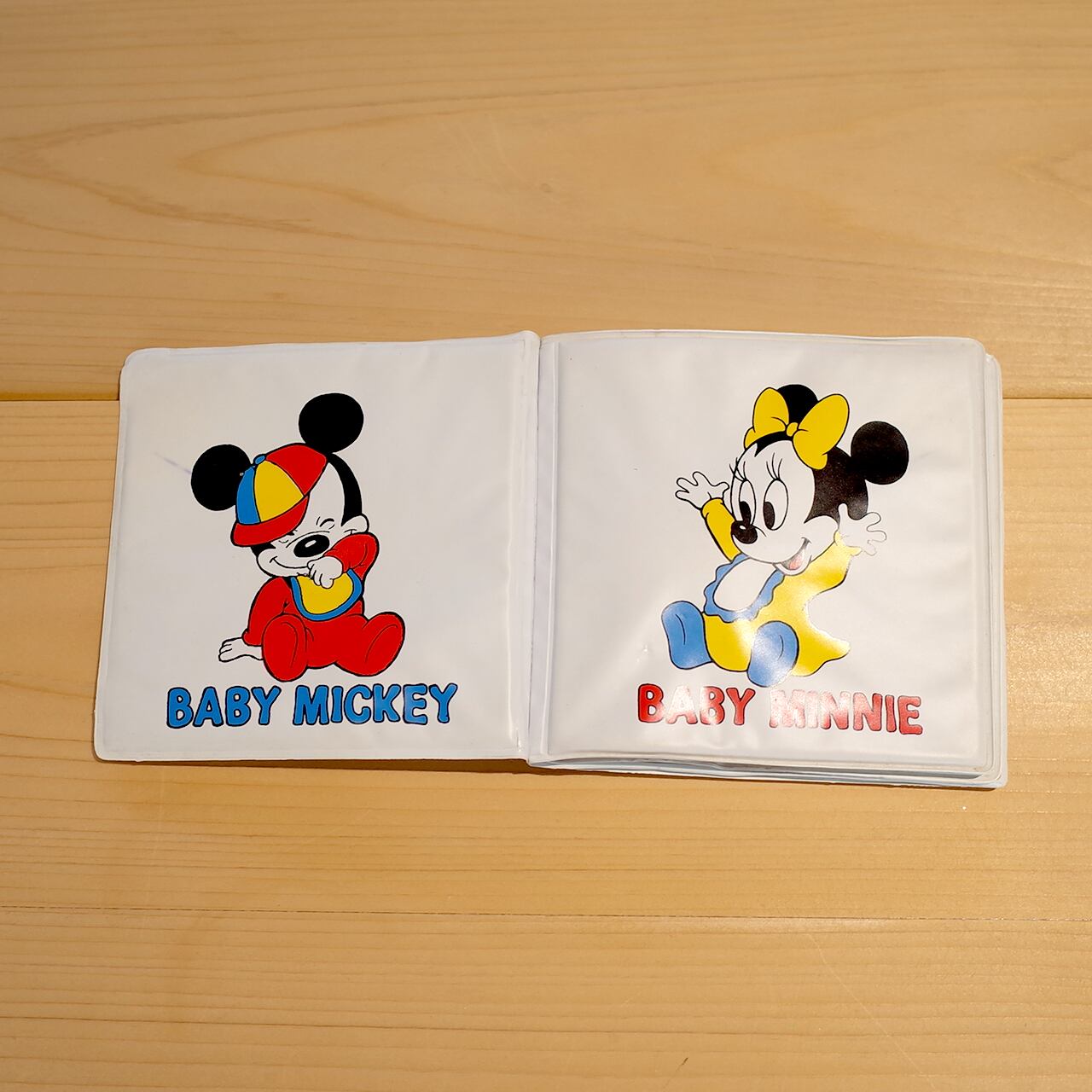 ビニールと中綿(スポンジ)で出来た絵本で、ディズニーキャラクターの赤ちゃんがプリントされています。
