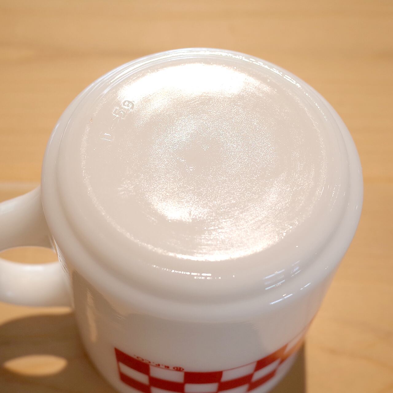 現在はネスレの子会社となっているペットケア用品の会社「Ralston Purina(現Purina)」の販促品として製作されていたヘーゼルアトラスのミルクガラスのマグカップです。