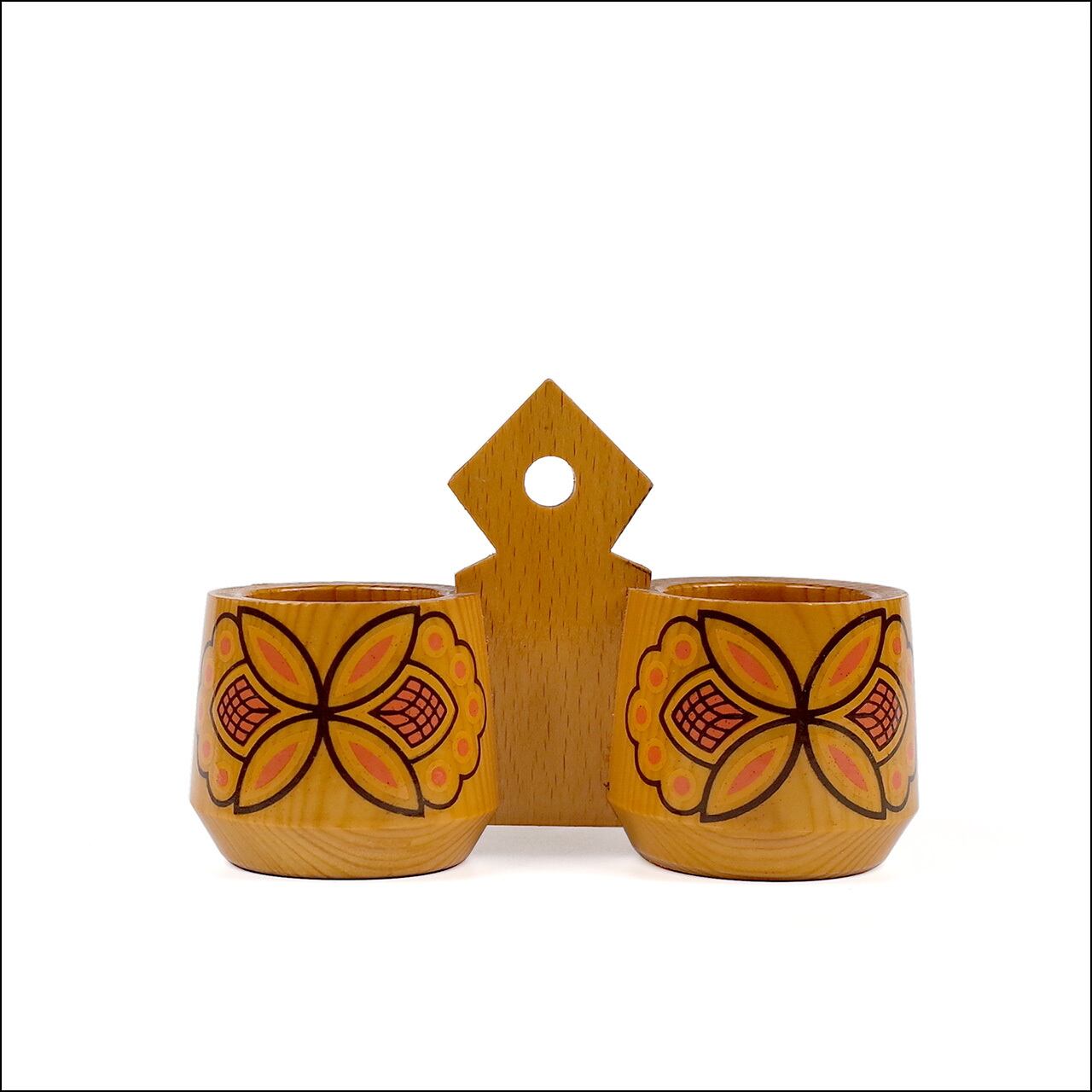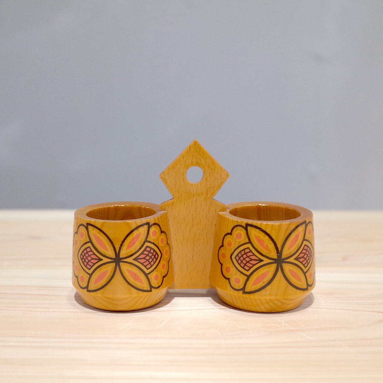 Wooden kitchen accessory holder Flower print 1970s-80【USED】